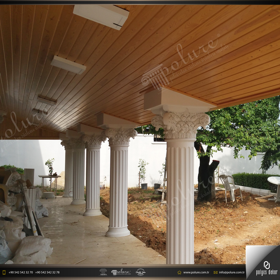 Poliüretan sütun örneklerinde Villa ve iş yeri giriş örneklerinde de görüldüğü gibi sütun dekorasyonları tasarımlara gerekli olan öz güveni estetiği kaliteli zengin görselliği en iyi şekilde katıyor.Sütun gövdesi başlığı ve ayaklığı ile giriş katlarında muazzam kaliteli dekorasyon görünümü sağlıyoruz.Sütunların dış dekorlarında en olarak,payandalar dekoratif taçlar çıtalar ve poliüretan süsleme dekorasyonlarıyla istediğiniz görüntüye bizimle kavuşmak çok kolay.